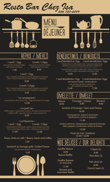 Welcome to Resto Chez Isa, a charming home-style restaurant nestled at 124 Rue du Pont in Bertrand, NB. This culinary gem offers an enticing menu that showcases a delightful mix of local favorites, from hearty burgers and crispy fries to velvety poutine and fresh seafood dishes.