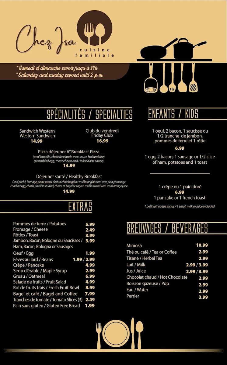 Customers rave about the comforting ambiance and generous portions. Laura Vautour calls it a "great little restaurant" with good food and affordable prices. However, expect a slight wait during peak times, as noted by Sophie Bertin, who still highly recommends it for its delicious offerings and friendly staff. Cherry Nearing loves the boiled dinner, describing it as akin to a home-cooked meal—a must-try for newcomers. With a bilingual team ready to serve you, Resto Chez Isa promises a warm welcome and unforgettable dining experience.